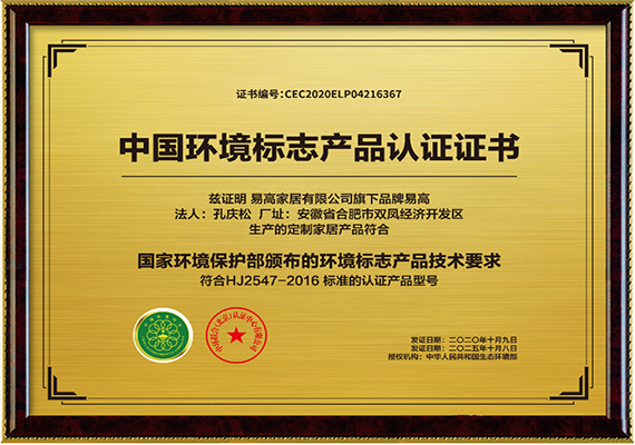 榮譽名稱:中國環境標志產品認證證書